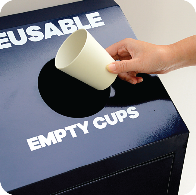 Completing the loop and ensuring your reusable Cups remain recovered, clean and in circulation – when paired with Kora+, we can provide scan-in scan-out return bins that deliver real-time usage analytics and inventory management. We can also provide “analogue” drop bins for any size organization that can be paired with any of our products.