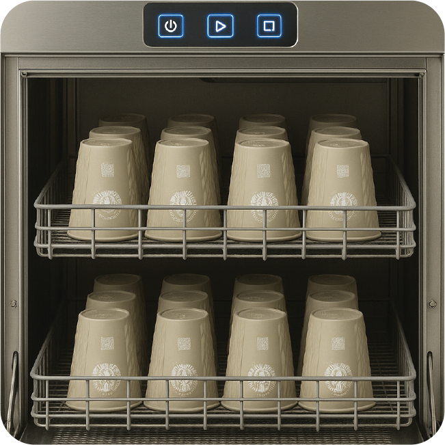 In addition, we offer modular wash solutions – from on-site specialist dishwashers or rinse hubs, to centralized pick-up-drop-off Cup washing facilities, tailored to your operational requirements.